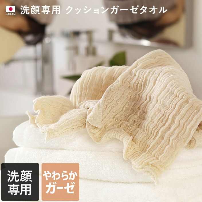 摩擦ほぼゼロ!肌へのやさしさにこだわった、もっちり柔らかな拭き心地 日本製 洗顔専用 クッションガーゼタオル / シルクプロテイン加工