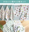 カワイイ柄がいっぱいガーゼハンドタオル <12枚セット>ガーゼタオル ハンドタオル(プチ柄6柄 スイーツ3柄 リトルフレンド3柄)