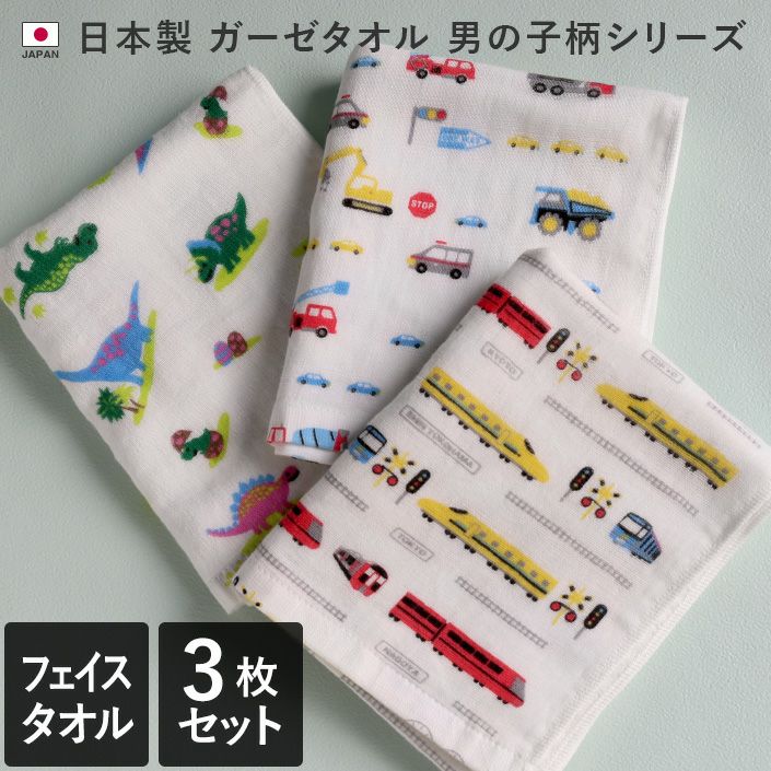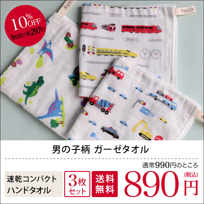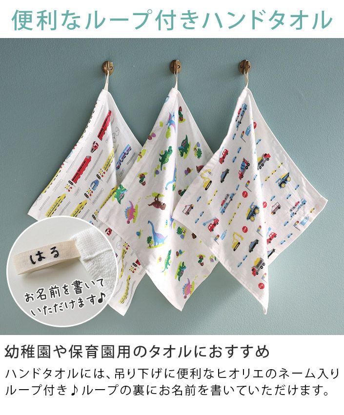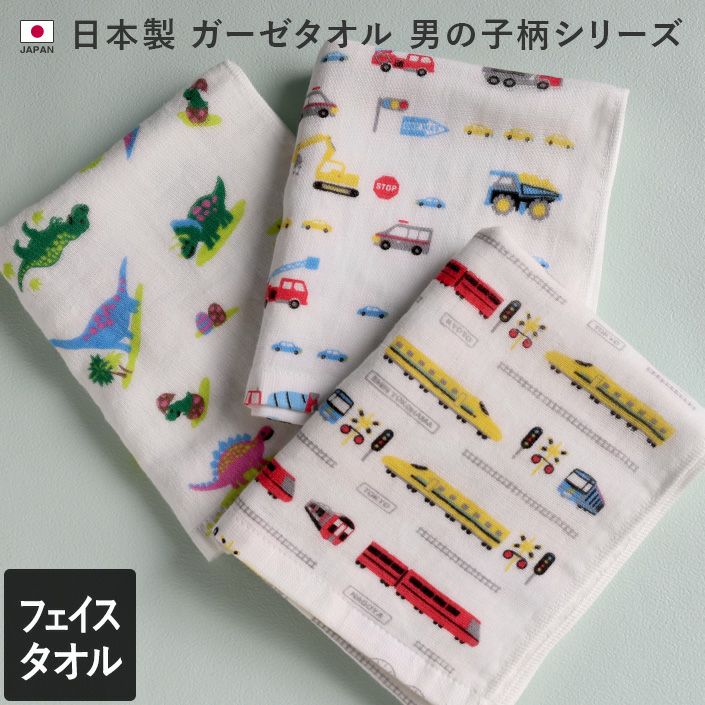タオル直販店ヒオリエの男の子柄ガーゼタオル。毎日使いにうれしい乾きの早さと、やさしい肌触りが人気のガーゼタオル。表はさらっとガーゼ、裏はふんわりパイルの薄手タオルは、普通のタオルより乾きが速く、収納時もかさばりません。「男の子柄 ガーゼタオル」は、お子様の大好きなモチーフ柄で赤ちゃん用のシーツやガーゼケットの代わりとしてお使いの方も多いタオルです。ハンドタオルは便利なループ付き。バスタオル、フェイスタオル、ハンドタオルを取り揃えています。肌に優しいガーゼタオルは出産祝いや、ちょっとしたご挨拶やプレゼントにもおすすめです。