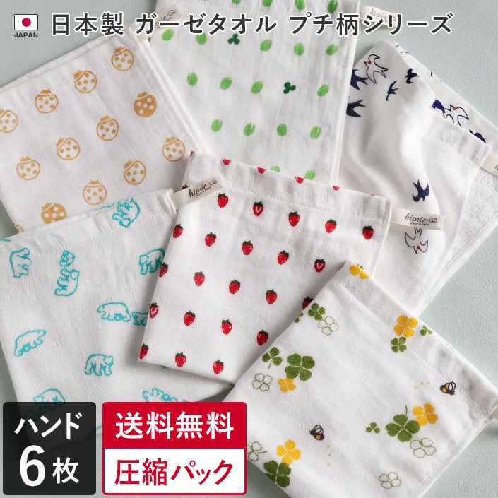 日本製ガーゼタオル ハンドタオル【プチ柄6枚セット】 (送料無料)<プチ柄6枚セット> ガーゼタオル ハンドタオル【圧縮】