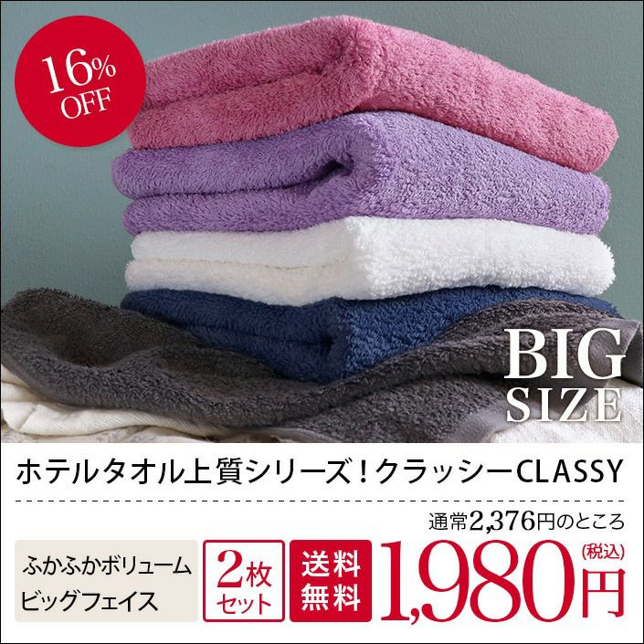 上質綿使用 ワンランク上のホテルスタイルタオルシリーズ (送料無料)<同色2枚セット> ホテルスタイルタオル 高級 CLASSY(クラッシー) ビッグ フェイスタオル