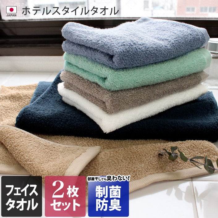 お肌にやさしくお部屋干しでも臭わない衛生的なタオル <同色2枚セット> 【制菌防臭】 ホテルスタイルタオル スタンダード フェイスタオル