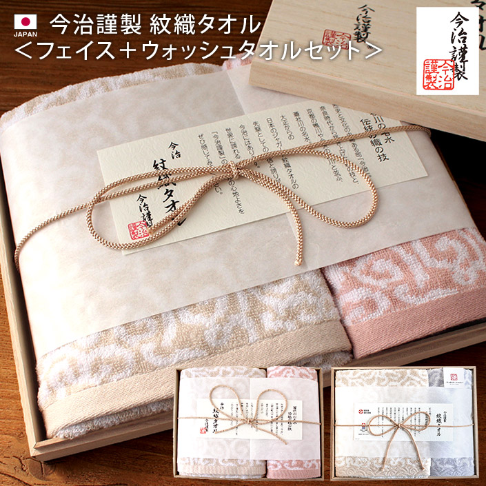 <2点セット> 今治 ギフト 今治謹製 紋織タオル <ウォッシュタオル1枚 フェイスタオル1枚> 木箱入 ● <2点セット> 今治 ギフト 今治謹製 紋織タオル <ウォッシュタオル1枚 フェイスタオル1枚> 木箱入