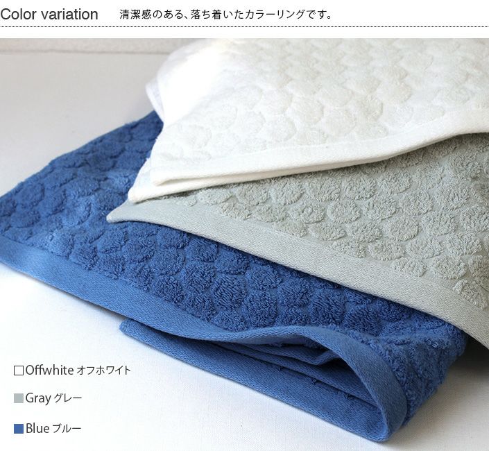 和泉山脈の天然水で晒しを行うことで生まれる、抜群の吸水性と肌なじみの良い柔らかさが特長です。