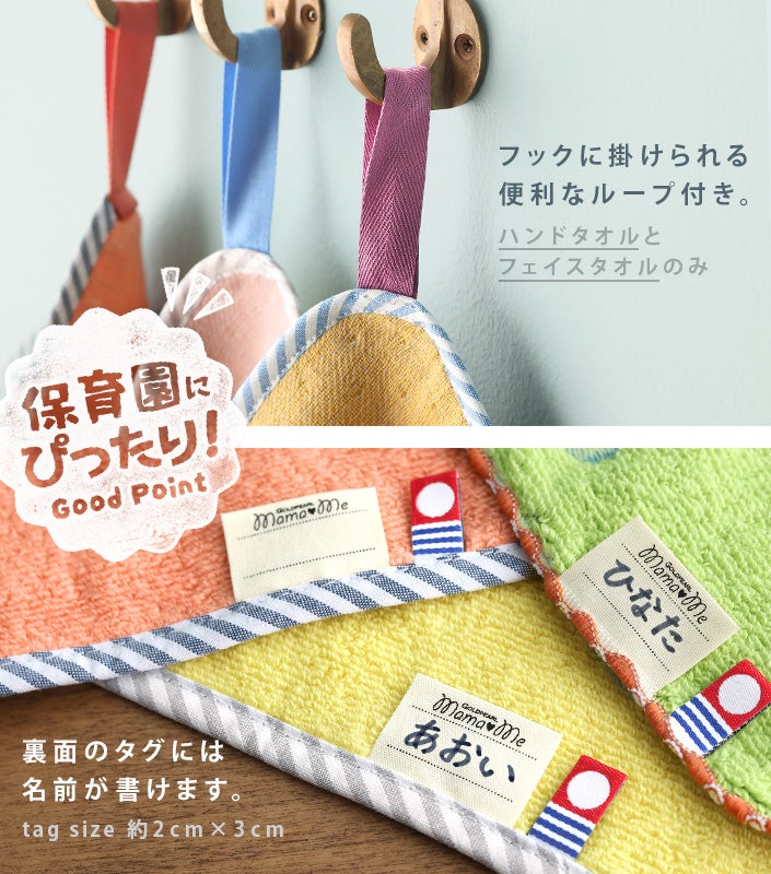 ハンドタオル、フェイスタオル、バスタオル、バスタオル代わりに使えるビッグフェイスタオル&ミニバスタオルの5サイズ展開。
