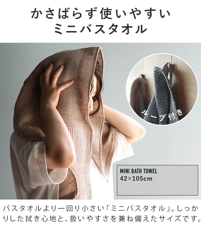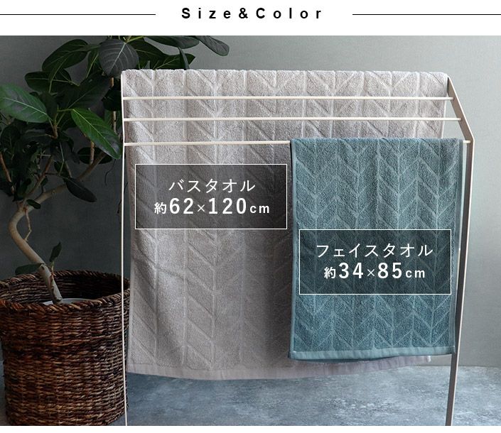バスタオル、ミニバスタオル、ビッグフェイスタオル、フェイスタオル、スマートフェイスタオル、ハンドタオル、タオルハンカチとサイズ展開も幅広く、用途やお好みに合わせてお選びいただけます。