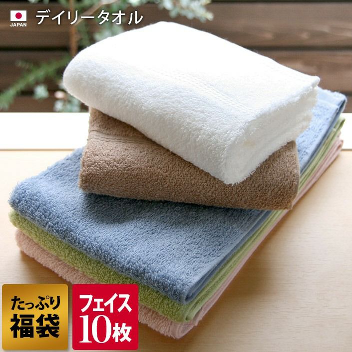 デイリー使いのシンプルタオル <10枚セット>デイリー フェイスタオル/ホワイト5枚+カラー5枚