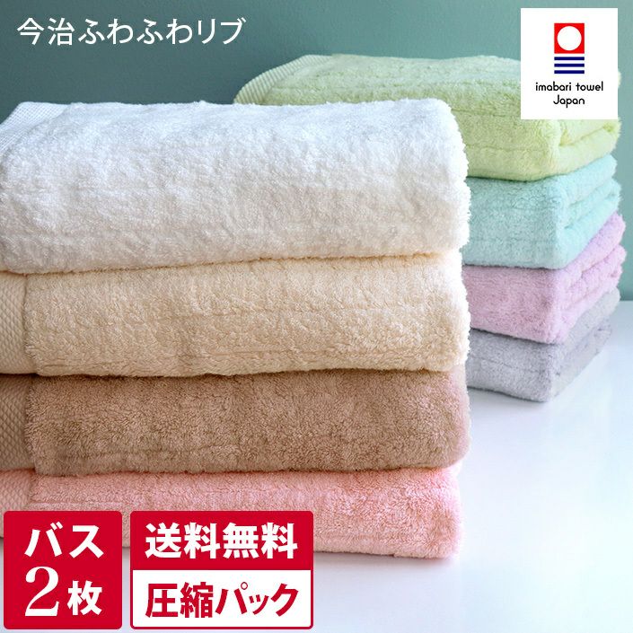 高級超長綿の甘撚糸使用 (送料無料)<同色2枚セット>日本製 今治タオル ふわふわリブタオル バスタオル 【圧縮】