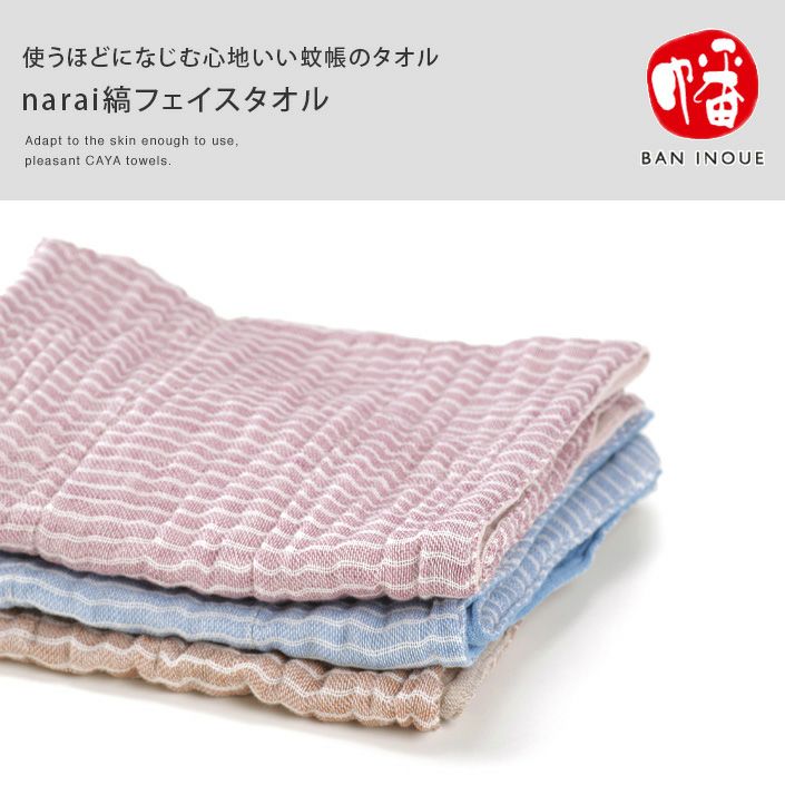 吸水性、肌触り、速乾性に優れた蚊帳のタオル narai縞 フェイスタオル