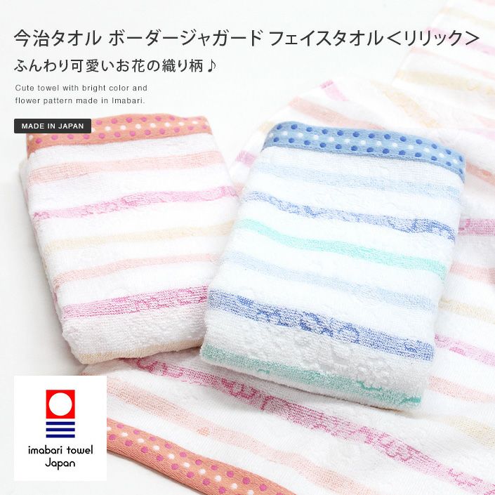ふんわり可愛いお花の織柄♪ 日本製 今治タオル ボーダージャガード フェイスタオル<リリック>