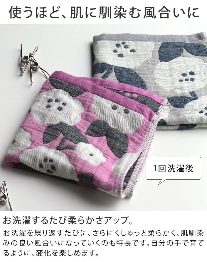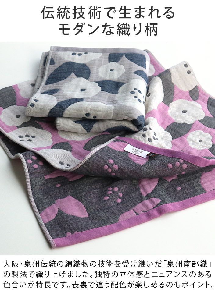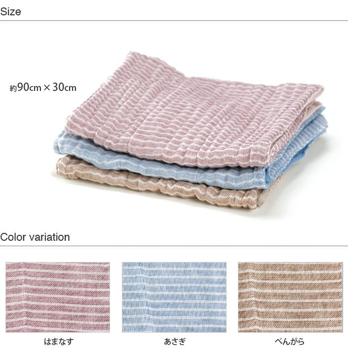 和泉山脈の天然水で晒しを行うことで生まれる、抜群の吸水性と肌なじみの良い柔らかさが特長です。