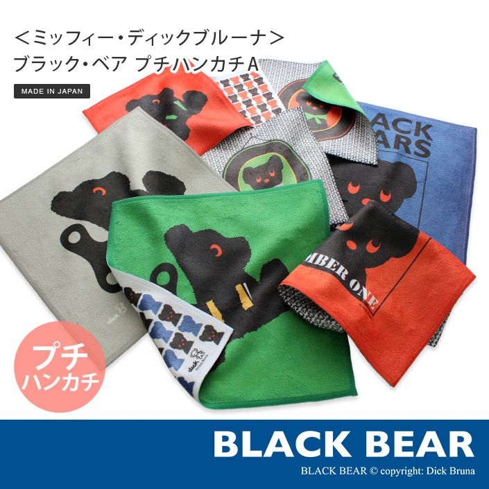 ミッフィーやブラックベアの可愛いタオル♪ <ミッフィー・ディックブルーナ>日本製 ブラック・ベア プチハンカチA