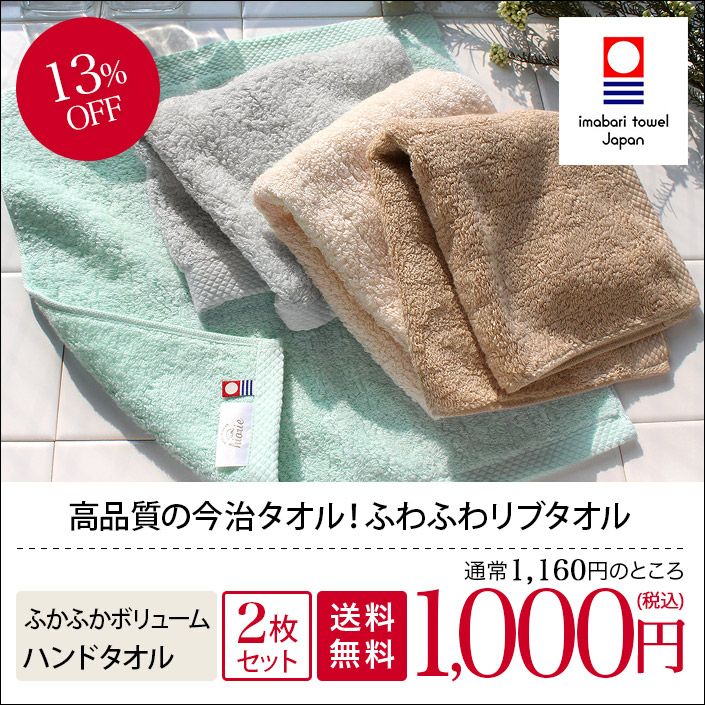高級超長綿の甘撚糸使用 <同色2枚セット>今治タオル ふわふわリブタオル ハンドタオル