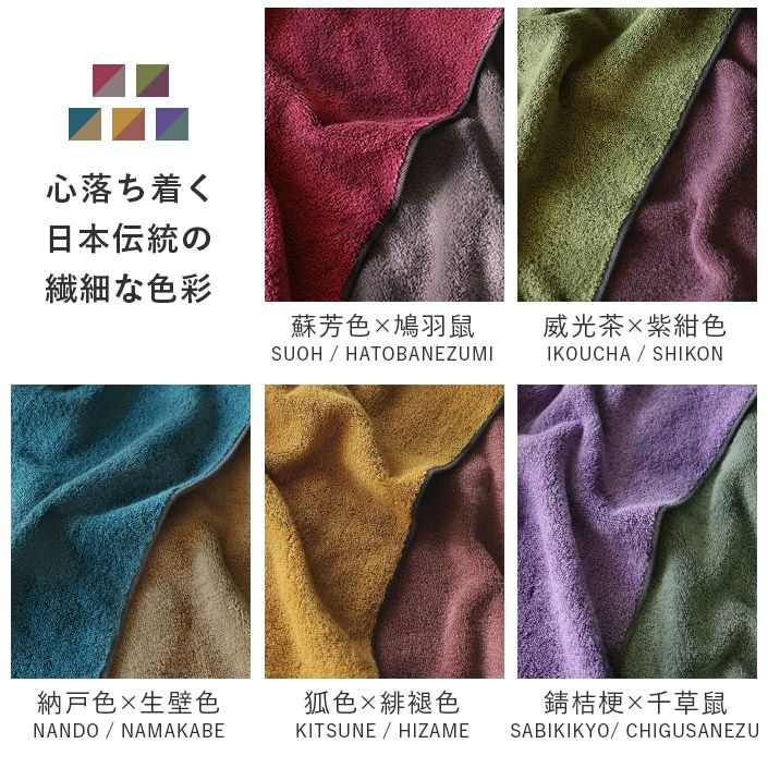 和泉山脈の天然水で晒しを行うことで生まれる、抜群の吸水性と肌なじみの良い柔らかさが特長です。