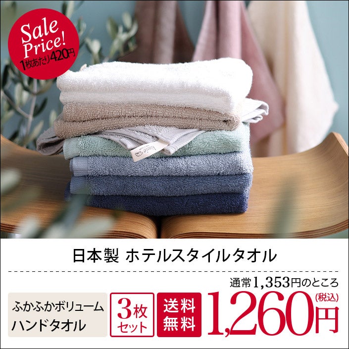 ホテル仕様のふかふか贅沢タオル ハンドタオルセット (送料無料)<同色3枚セット>日本製 ホテルスタイルタオル ハンドタオル