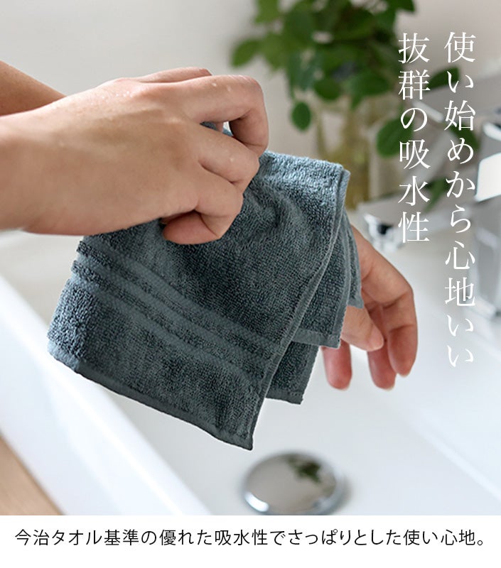 和泉山脈の天然水で晒しを行うことで生まれる、抜群の吸水性と肌なじみの良い柔らかさが特長です。
