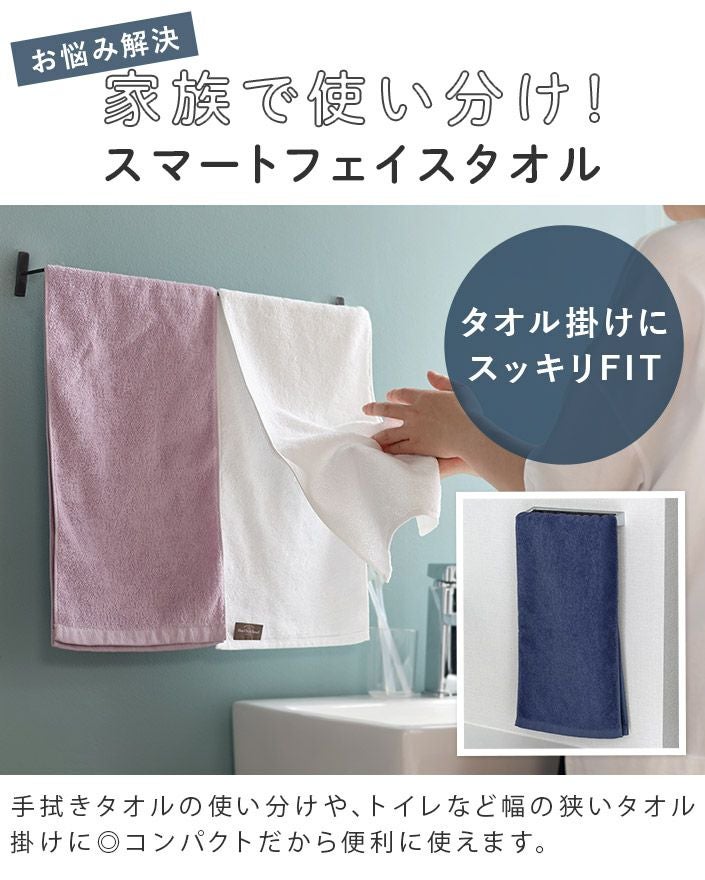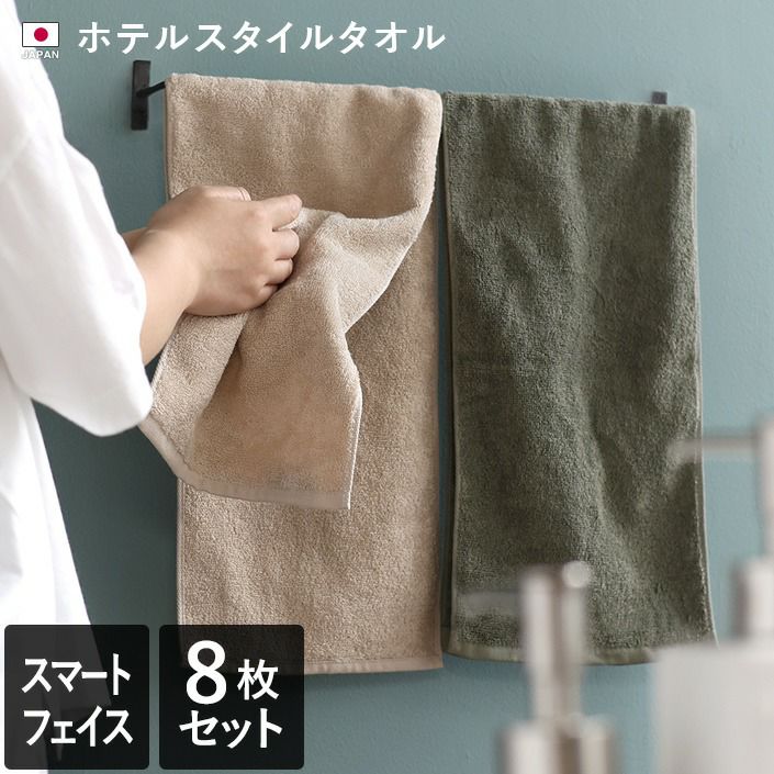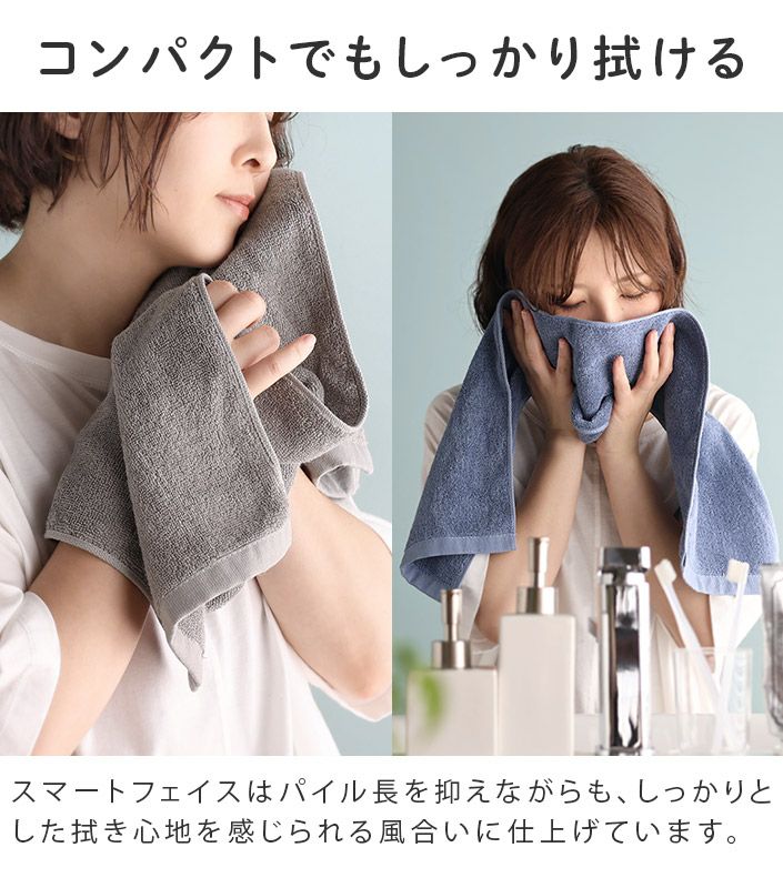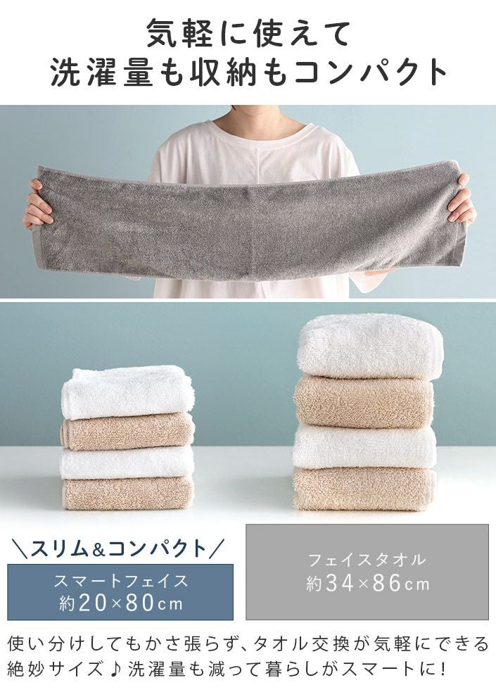 スリム&コンパクトで使い分けに便利 (送料無料)<同色2枚セット>日本製 ホテルスタイルタオル スマートフェイスタオル