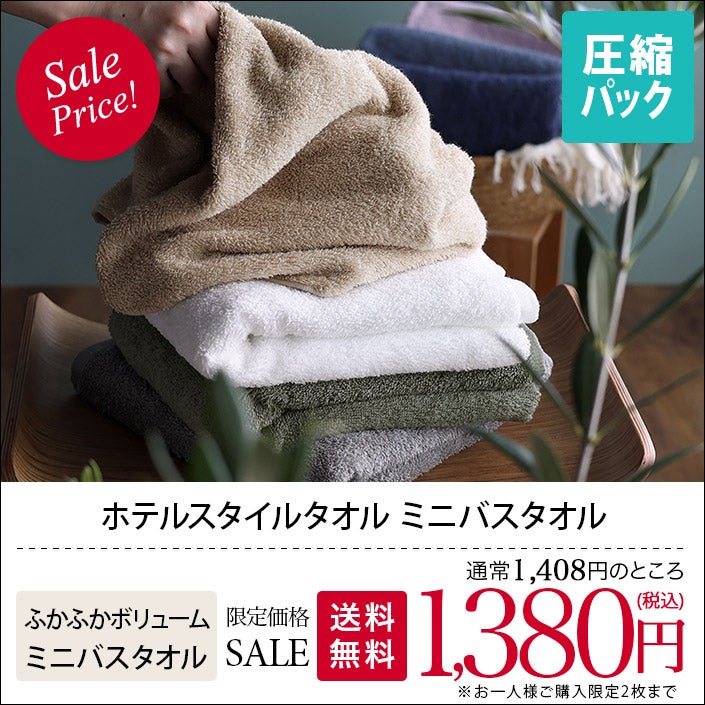 ビッグフェイスタオルより少し大きなジャストサイズ (送料無料)日本製 ホテルスタイルタオル ミニバスタオル<おひとり様2枚まで> 【圧縮】 / サタプラ サタデープラス