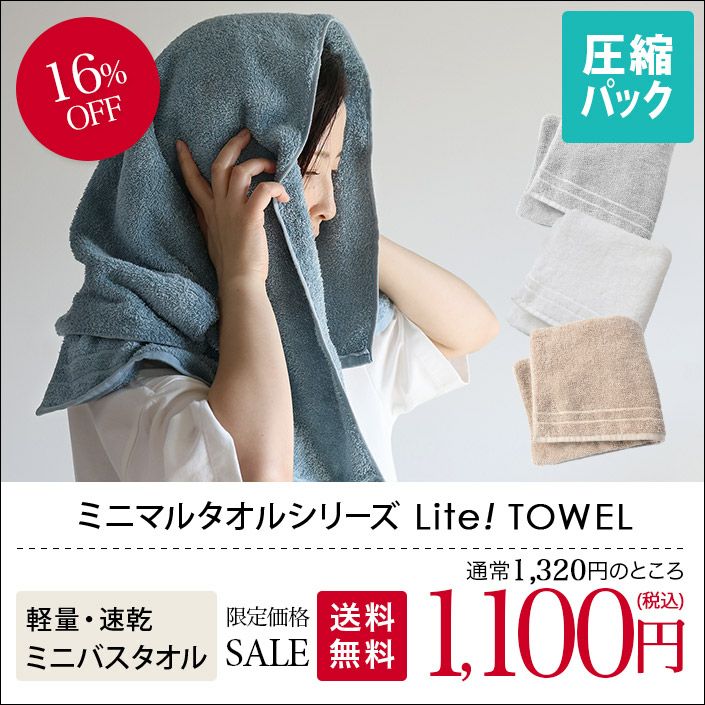 スマートな暮らしを叶えるコンパクトタオル (送料無料)日本製 ミニバスタオル Lite! TOWEL ライトタオル 【圧縮】