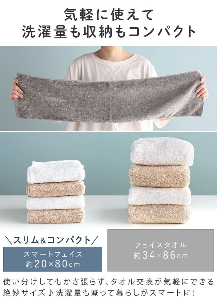 スリム&コンパクトで使い分けに便利 (送料無料)<同色2枚セット>日本製 ホテルスタイルタオル スマートフェイスタオル