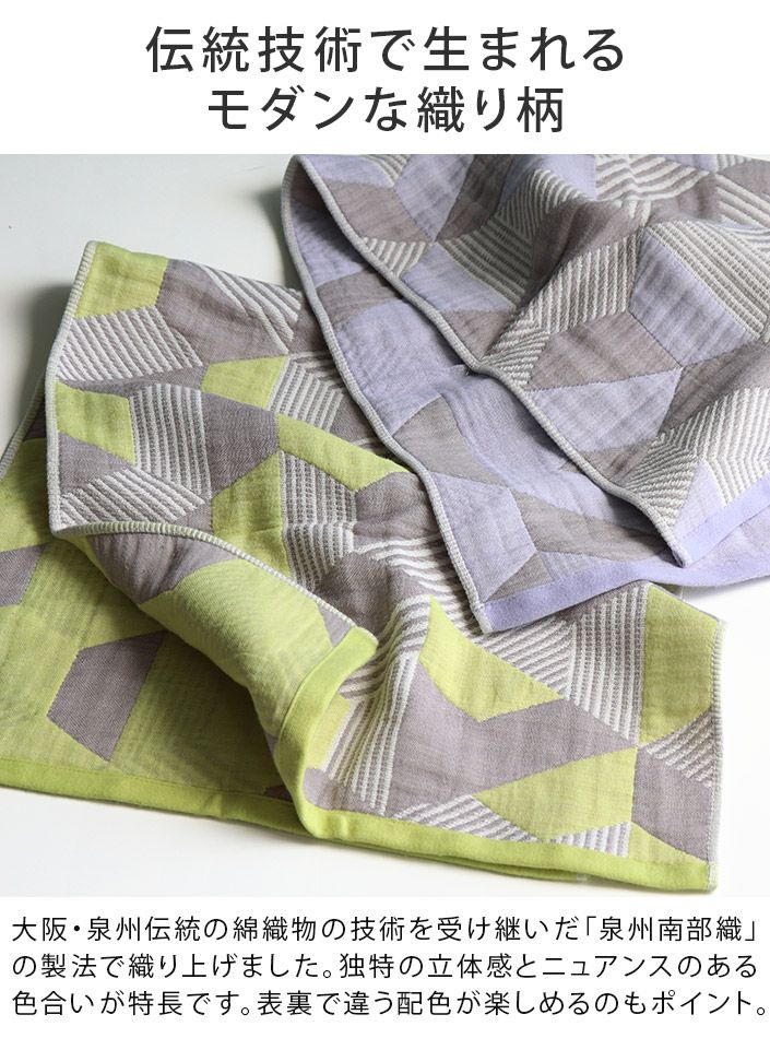 和泉山脈の天然水で晒しを行うことで生まれる、抜群の吸水性と肌なじみの良い柔らかさが特長です。