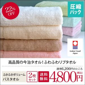 (送料無料)<同色2枚セット>日本製 今治タオル ふわふわリブタオル バスタオル 【圧縮】のレビュー