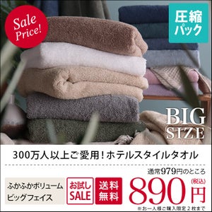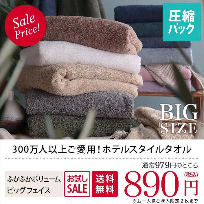 (送料無料)日本製 ホテルスタイルタオル ビッグフェイスタオル 大きな100cm丈<おひとり様2枚まで> 【圧縮】 / サタプラ サタデープラスのレビュー