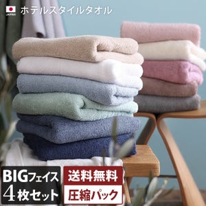 (送料無料)<同色4枚セット>日本製 ホテルスタイルタオル ビッグフェイスタオル 大きな100cm丈 【圧縮】のレビュー