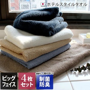 <同色4枚セット>【制菌防臭】 ホテルスタイルタオル ビッグ フェイスタオル 大きな100cm丈のレビュー