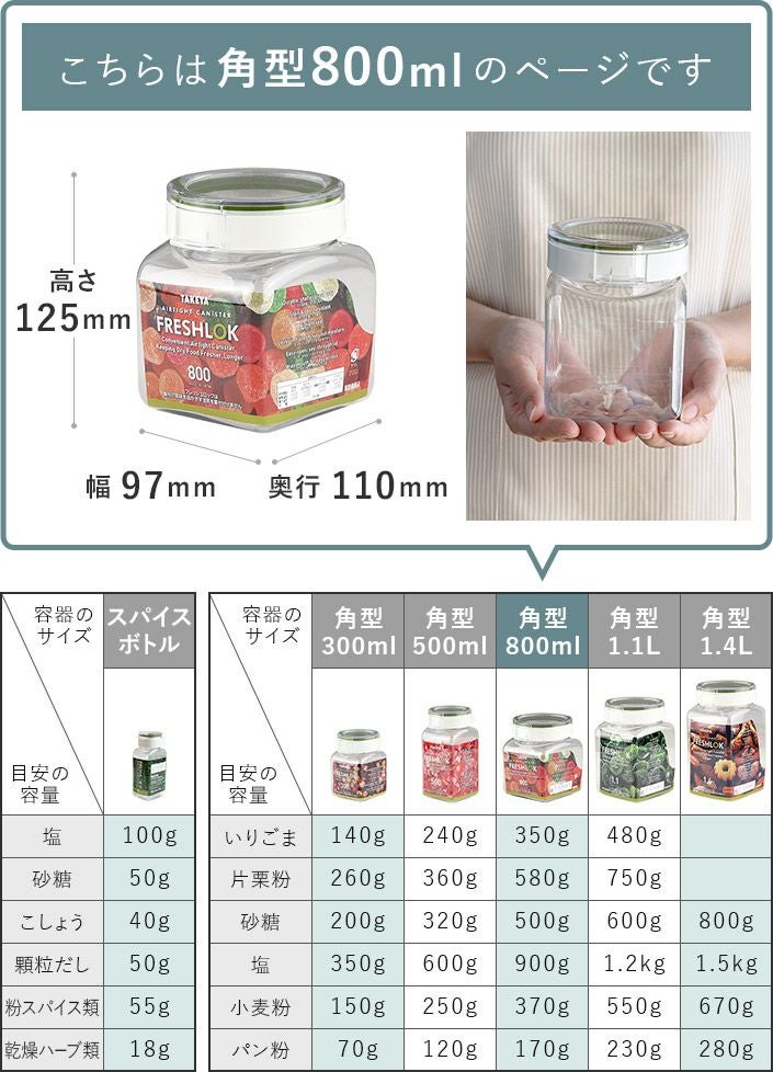 他の画像を見る 風味を逃さず湿気を防ぐ 軽量・高気密な保存容器 (送料無料)<4個セット><角型 800ml>日本製 保存容器 フレッシュロック FRESHLOK 送料無料 メーカー希望小売価格 ¥ 3,520 特価 ¥ 3,168 税込 (0) お気に入りに登録する