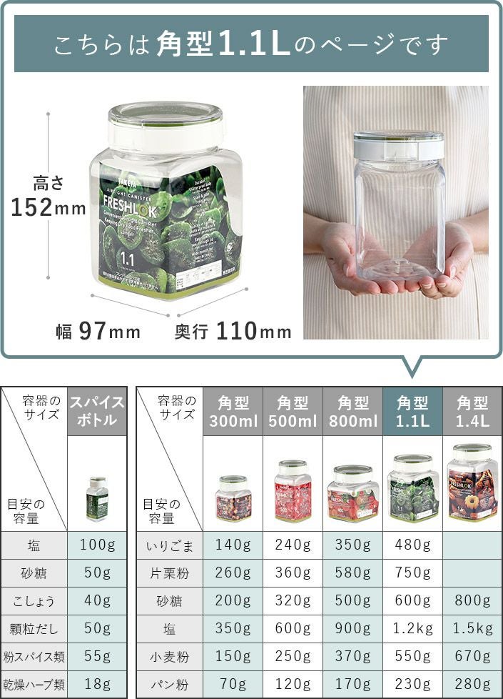 他の画像を見る 風味を逃さず湿気を防ぐ 軽量・高気密な保存容器 (送料無料)<3個セット><角型 1.1L>日本製 保存容器 フレッシュロック FRESHLOK 送料無料 メーカー希望小売価格 ¥ 2,805 特価 ¥ 2,525 税込 (0) お気に入りに登録する