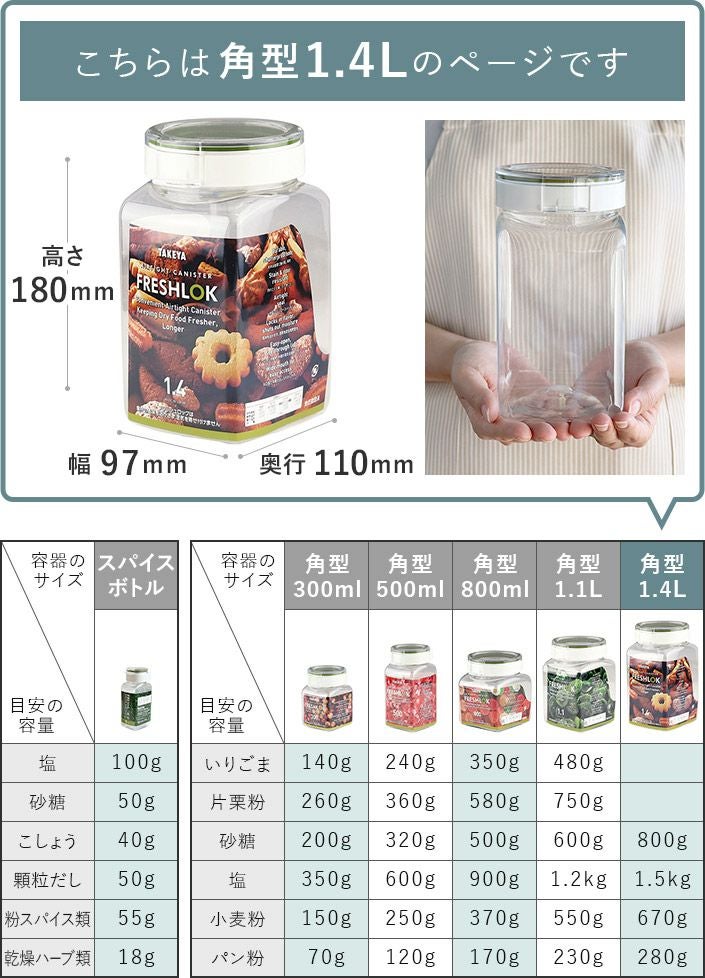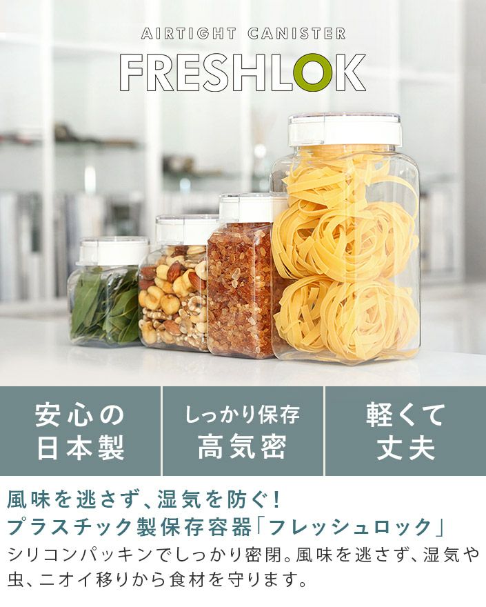 他の画像を見る 風味を逃さず湿気を防ぐ 軽量・高気密な保存容器 (送料無料)<3個セット><角型 1.4L>日本製 保存容器 フレッシュロック FRESHLOK 送料無料 メーカー希望小売価格 ¥ 2,970 特価 ¥ 2,673 税込 (0) お気に入りに登録する