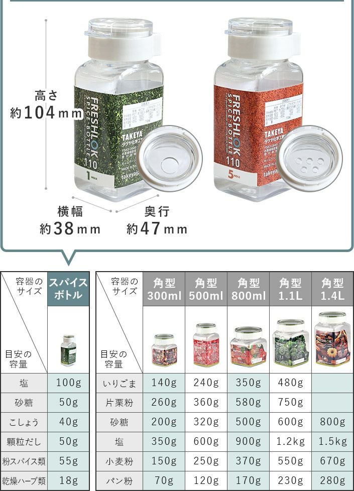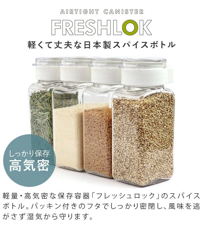 他の画像を見る 軽くて丈夫な日本製スパイスボトル (送料無料)<6個セット>日本製 スパイスボトル 110ml フレッシュロック FRESHLOK 送料無料 メーカー希望小売価格 ¥ 2,970 特価 ¥ 2,673 税込 (0) お気に入りに登録する