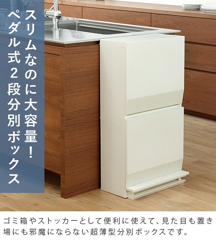 他の画像を見る スリムなのに大容量!ストッカーとしても使える超薄型分別ボックス (送料無料)日本製 分別 ダストボックス ワイド 2段 45L SOLOW / ごみ箱 ゴミ箱 ¥ 7,150 税込 (0) お気に入りに登録する
