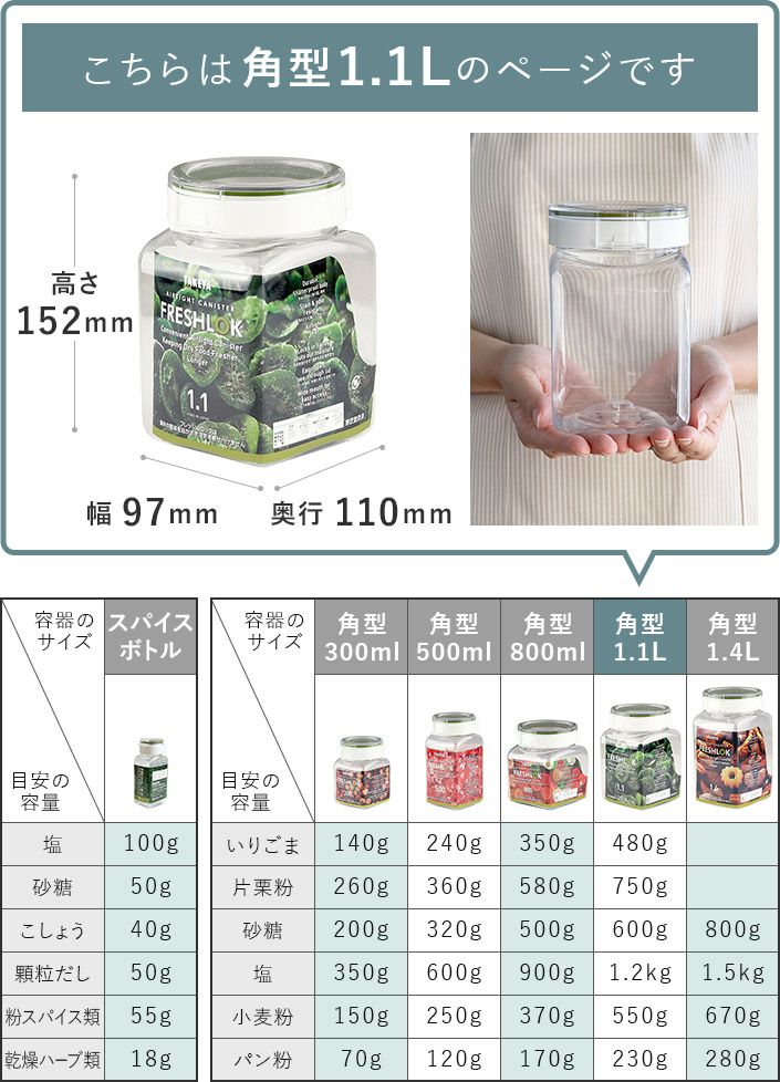他の画像を見る 風味を逃さず湿気を防ぐ 軽量・高気密な保存容器 (送料無料)<3個セット><角型 1.1L>日本製 保存容器 フレッシュロック FRESHLOK 送料無料 メーカー希望小売価格 ¥ 2,475 特価 ¥ 2,227 税込 (0) お気に入りに登録する