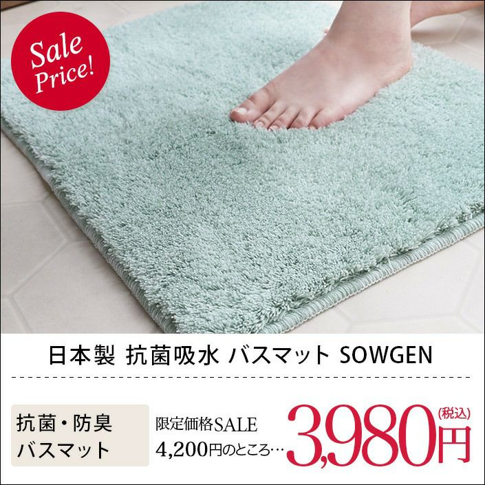 他の画像を見る まるで草原の踏み心地 日本製 抗菌吸水 バスマット SOWGEN NEW ギフトラッピング対応 メーカー希望小売価格 ¥ 4,200 SALE ¥ 3,980 税込 (0) 販売期間 2025/12/15 10:00 〜 2026/01/13 9:59 お気に入りに登録する