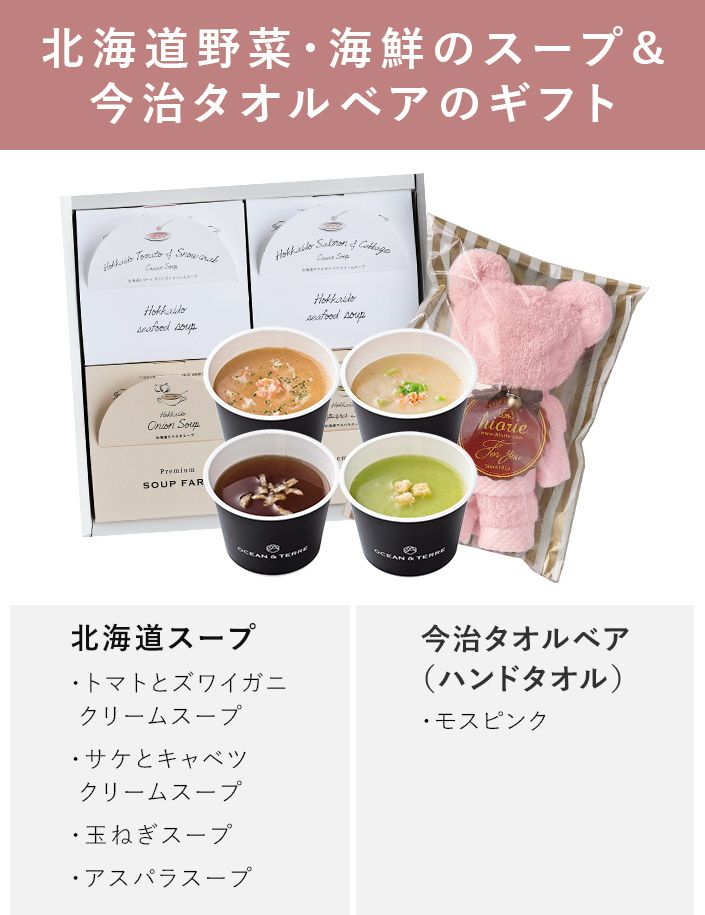 他の画像を見る 北海道の自然の恵みを手軽に味わえるカップスープと、ふんわり可愛いタオルベアのセット (送料無料)● 北海道スープ+タオルベア ギフトセット ¥ 3,100 税込 (0) 在庫切れ お気に入りに登録する
